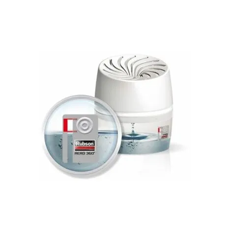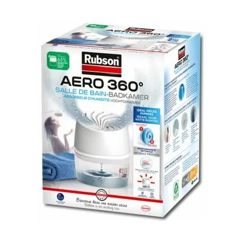 - Emballage – Rubson AÉRO 360° Salle de Bain Absorbeur d’HumiditĂ©, Absorbeur dÂ’odeur rĂ©duisant lÂ’excès dÂ’humiditĂ© et prĂ©venant moisissures et mauvaises odeurs, 1 appareil + 1 recharge Tab de 450 g.