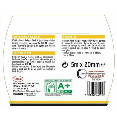 - Usage du produit: Boudin en mousse pour calfeutrer le fond d’une fissure avant application du mastic
